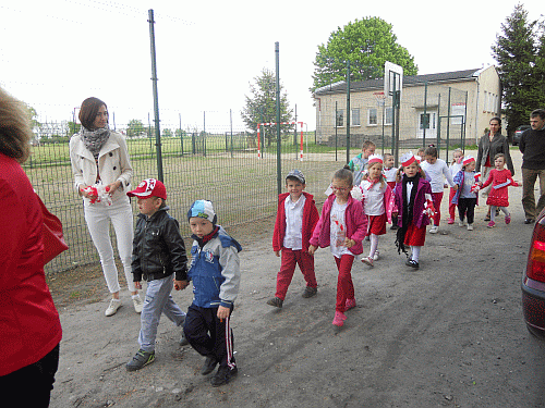Na podsumowanie wszyscy zaśpiewali hymn polski i z patriotycznym duchem udali się na coroczny pochód z flagami do pobliskiej figurki Matki Bożej. Stroje uczniów oraz ich zaangażowanie w występ odzwierciedlały ponadczasowość hasła: BÓG, HONOR, OJCZYZNA. Tegoroczne obchody 223 rocznicy uchwalenia Konstytucji przygotowały: p. Karolina Kiełbowicz i p. Karolina Leżyńska.
