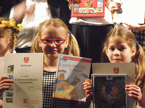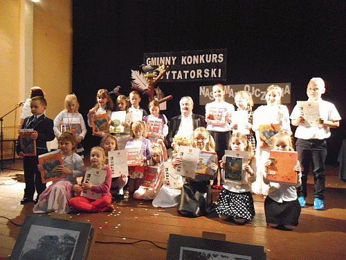 W konkursie udział wzięli m.in. uczniowie z naszej szkoły: Karina Kęprowska, Nikola Sękowska, Natalia Dobrowolska i Martyna Bogóska. Jury miało czas na podjęcie trudnej decyzji w sprawie wyboru najbardziej ciekawych wystąpień. Był to też moment na słodki poczęstunek i zwiedzenie szkoły. Laureaci z innych szkół otrzymali medale, dyplomy i nagrody książkowe. Nasze reprezentantki nie zdobyły pierwszych miejsc, ale za wystąpienie nagrodzono je brawami, dyplomami, książkami oraz autografami celebryty. Na zakończenie uroczystości słuchaliśmy baśni czytanej przez pana Pawła Szczęsnego - ,,Brzydkiego Kaczątka`. Wystąpienie na prawdziwej scenie było nieopisanie ważnym doświadczeniem dla naszych uczennic. Opiekunem wycieczki do Kikoła była p. Karolina Leżyńska.