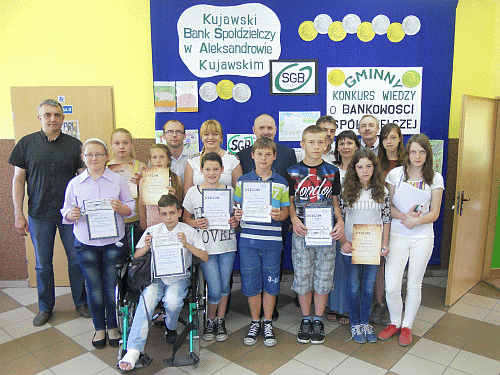 Dnia 10.06.2014 odbył się Gminny Konkurs Wiedzy o Bankowości Spółdzielczej w Woli, którego organizatorem był p. Stanisław Chyziński oraz p. Jacek Sadowski. Wzięło w nim udział czterech uczniów z naszej szkoły: Patrycja Balińska, Agnieszka Dykowska, Michał Rynkowski i Adam Mylkie, którzy wcześniej przebyli drogę eliminacji wewnątrzszkolnej. Trzecie miejsce w końcowym etapie konkursu zdobył Michał Rynkowski. Otrzymał dyplom oraz czek na 110 zł. Adam Mylkie zdobył wyróżnienie dyplomem oraz czek na 50 zł. Pozostałe osoby otrzymały dyplomy za uczestnictwo. Sponsorem nagród był Bank Spółdzielczy w Aleksandrowie Kujawskim. Opiekunem uczniów naszej szkoły była p. Aleksandra Jeziórska, nauczycielka matematyki.