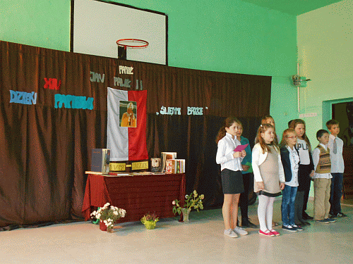 Dnia 21.10.2014 r. w Szkole Podstawowej w Zajeziorzu zorganizowano apel z okazji XIV DNIA PAPIESKIEGO. Pięć dni po 36 rocznicy, wspominaliśmy dzień 16.10.1978 r., w którym Polak został papieżem. Karol Wojtyłą pozostawił po sobie wiele dobrych słów i uczynków zapisanych przez nie jednego dokumentalistę. Jan Paweł II nazywany Ojcem Świętym miał w swoim pontyfikacie wiele osiągnięć związanych z budowaniem u nas wiary, nadziei oraz miłości do bliźnich. Uczniowie naszej szkoły zaśpiewali na jego cześć chwalebne pieśni i wypowiedzieli wiele dziękczynnych słów. Nad przygotowaniem apelu czuwali nauczyciele: p. Halina Bogóska i p. Katarzyna Rybczyńska.