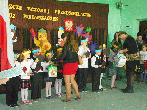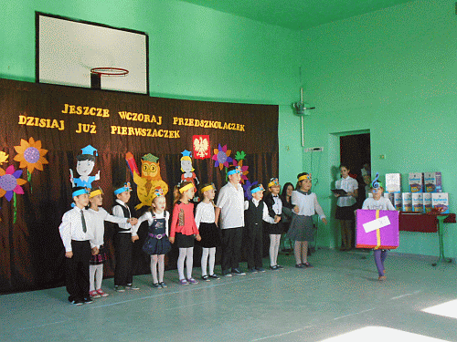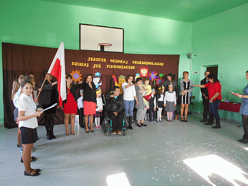 Dnia 05.11.2014 r. dzieci z klasy pierwszej Szkoły Podstawowej w Zajeziorzu przeszły przez ważny etap w swojej edukacji `“ ślubowanie oraz pasowanie na uczniów. W tej drodze pomogła im p. Marta Stempska, która zorganizowała ciekawą akademię. Uczniowie musieli wykazać się kluczowymi umiejętnościami, jakimi są: śpiew, taniec, liczenie, czytanie, zapamiętywanie i recytowanie wierszy oraz miłowanie istotnych wartości tj.: ojczyzna. Zaskoczeniem dla wszystkich było: ślubowanie rodziców, wystrzeliwane konfetti, przepyszny tort. Pierwszoklasiści otrzymali przydatne i miłe upominki, z których bardzo się cieszyli.