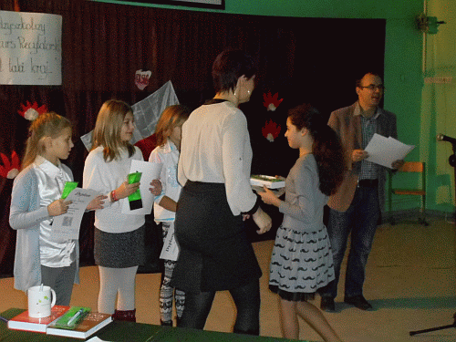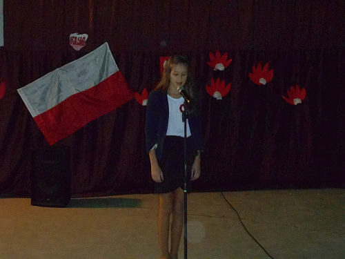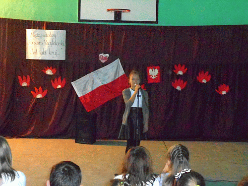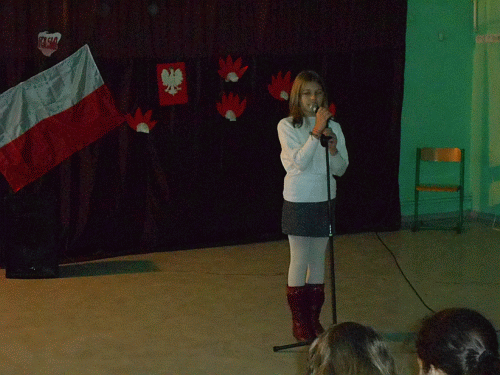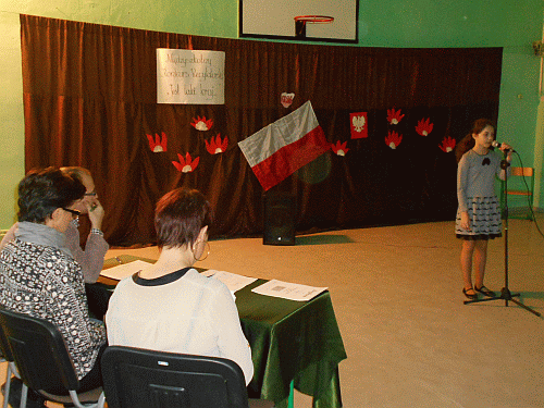 1. miejsce `“ Patrycja Borowicz (SP Wola, Klasa V, wiersz: "Jest taki kraj" J. Pietrzak); 2. miejsce `“ Patrycja Balińska (SP Zajeziorze, Klasa VI, wiersz: "Bagnet na broń" W. Broniewski); 3. miejsce `“ Alicja Dobrowolska (SP Zajeziorze, Klasa VI, wiersz: "Jest taki kraj" J. Pietrzak).