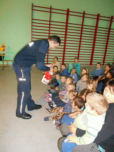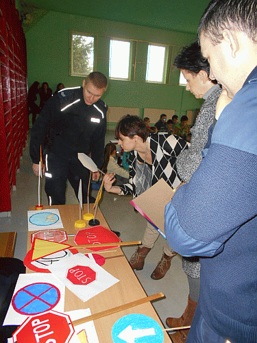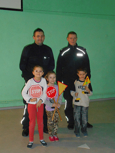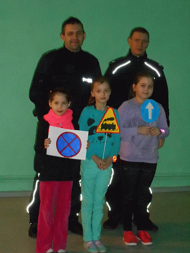 Dnia 11.02.2015 r. do Szkoły Podstawowej w Zajeziorzu przyjechało dwóch policjantów zaproszonych przez p. Małgorzatę Chojnicką. Aspirant Paweł Błaszkiewicz oraz starszy sierżant Paweł Ostrycharz przedstawili pogadankę na temat bezpieczeństwa uczniów w ruchu drogowym i podczas zimowych ferii. Na zakończenie każdemu dziecku wręczyli widoczny, kolorowy odblask. Pomogli również przy ocenie prac konkursowych wykonanych przez najmłodszych uczniów. W najbliższym czasie po wypoczynku zimowym zwycięzcy otrzymają drobne upominki za swoje znaki drogowe. Kategoria wiekowa (do klasy I):