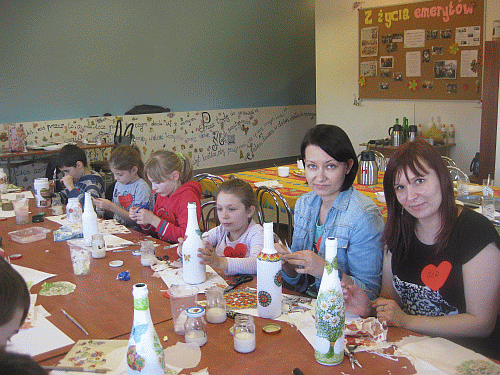 16.02.2014 r. - pierwszy dzień ferii dla uczniów ze Szkoły Podstawowej w Zajeziorzu zorganizowała p. Aleksandra Jeziórska. Po raz drugi odbyły się zajęcia artystyczne w Centrum Kulturalno - Oświatowo - Rekreacyjnym w Skępem dla dzieci z klas I - IV. Tym razem nasi podopieczni ozdabiali butelki metodą decoupage. W przerwie dzieci miały przygotowany posiłek. Gdy ukończyły swoje dzieła, mogły pograć w gry: bilard lub zręcznościową piłkę nożną na stole. Przywitał nas burmistrz Skępego, p. Piotr Wojciechowski, który poczęstował wszystkich słodkimi cukierkami. Za gościnność gminy Skępe serdecznie dziękujemy!