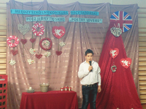 Dnia 13.02.2015 r. dwoje uczniów naszej szkoły miało okazję zaprezentować się w konkursie poezji angielskiej pt. "Poetry Lovers", który odbył się w Maliszewie.