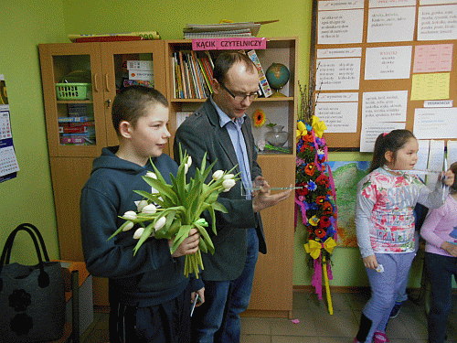 Dnia 18.03.2015 r. do Szkoły Podstawowej w Zajeziorzu przyjechała p. Magda Krzywdzińska, która wspólnie z dziećmi wykonała palmę wielkanocną. Przez cały czas starała się przedstawić jak najwięcej technik tworzenia kwiatów z papieru (bibuły). Pan dyrektor, Zbigniew Bogóski wręczył p.Magdalenie (pracownikowi Centrum Kulturalno`“ Oświatowo`“Rekreacyjnego w Skępem) specjalną nagrodę w podziękowaniu za zaangażowanie, inicjatywę i udział w życiu naszej szkoły. Gość wraz z nauczycielami ocenił prace uczniów biorących udział w konkursie na najpiękniejszą pisankę. Wszystkie rękodzieła okazały się wspaniałe i będą sprzedawane w kiermaszu przed Parafią w Ciepieniu, podczas Mszy Św. z okazji Niedzieli Palmowej. Organizacją tej zorganizowanej, świątecznej akcji zajęła się p. Aleksandra Jeziórska.