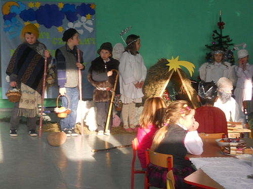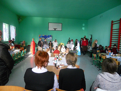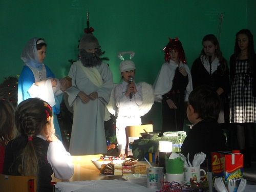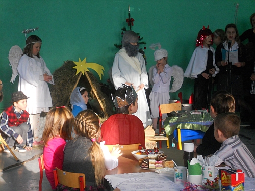 Wigilia w szkole z roku szkolnego 2012/2013. Scenariusz przedstawienia przygotowała p. Halina Bogóska.