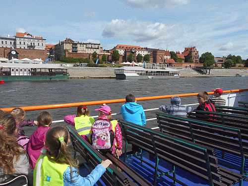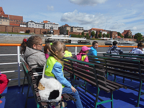 Na początku dzieci zjadły i napiły się w KFC. Po posiłku mogły pojechać dalej, by w głównej atrakcji dnia skorzystać z rejsu statkiem ,,Wanda` po Wiśle. Widok Starówki od strony rzeki zrobił na wszystkich niezapomniane wrażenie.