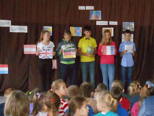Dnia 26 września obchodzimy Europejski Dzień Języków (EDJ). Z tej okazji dnia 24.09.2015 r. uczniowie klasy VI wraz z wychowawcą, p. Karoliną Kiełbowicz przygotowali krótki apel promujący naukę języków w Europie. W pierwszej części uczniowie dostarczyli wielu ciekawych informacji i zaprezentowali się przed całą szkołą. Następnie wszyscy obejrzeli film pt. "Dlaczego warto uczyć się języków?".