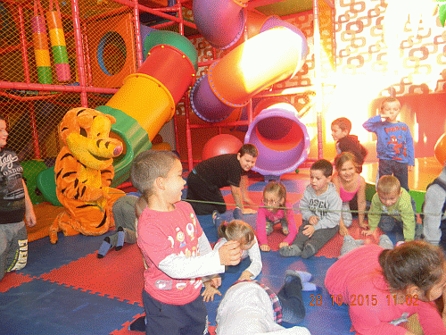 Dnia 28.10.2015 r. przedszkolaki i uczniowie klas 1 - 3 ze Szkoły Podstawowej w Zajeziorzu wyjechali na wycieczkę do sali zabaw w Toruniu - Kinderparku. Wszyscy mogli rozładować swoją energię podczas ruchu na krytym placu zabaw. Atrakcją dla najmłodszych okazał się też taniec z pluszowym misiem - przebierańcem.