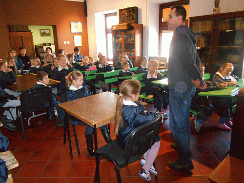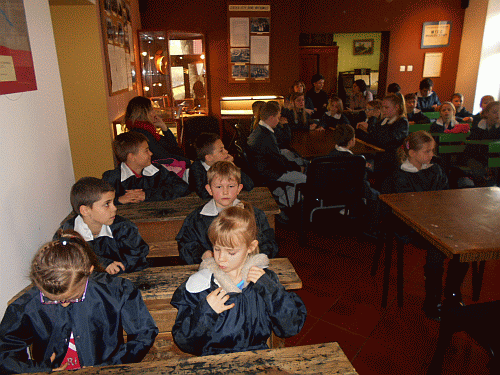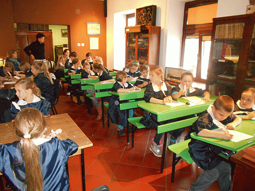Lekcja przedstawiała zarys historii szkolnictwa w Polsce ze szczególnym uwzględnieniem Ziemi Dobrzyńskiej. Uczniowie poznali wnętrze dawnej klasy wraz z jej wyposażeniem. Omówione zostały aspekty religii w szkole oraz rola nauczyciela. Dzieci uczyły się kaligrafii piórem gęsim. Każdy uczeń otrzyma po tej lekcji świadectwo ukończenia Szkoły Dobrzyńskiej na własność.