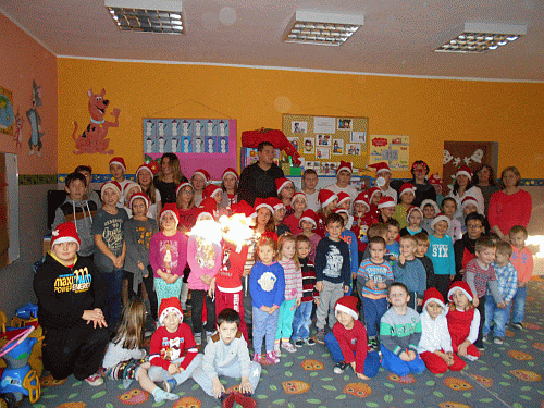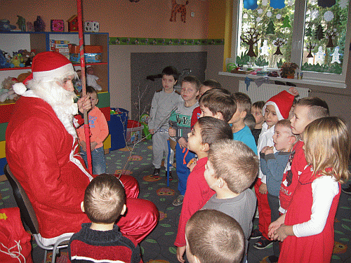 Święty Mikołaj nie zawiódł Â dzieci i nie kazał długo na siebie czekać. Już przed południem zawitał do naszych klas. Wszystkie dzieci bardzo przeżywały to spotkanie. Na niejednej twarzy można było zobaczyć niepewność, obawę, a nawet lęk. Trwało to jednak krótko. Maluszki z oddziału przedszkolnego dzielnie zaśpiewały przygotowaną piosenkę, rozmawiały z Mikołajem. Długo opowiadały o zabawach, w jakie lubią się bawić ze swoja panią Moniką i oczywiście chwaliły się, że są bardzo grzeczne. Mikołaj wręczył każdemu dziecku wspaniały prezent i musiał się pożegnać, ponieważ czekały na niego jeszcze dzieci z innych stron świata.