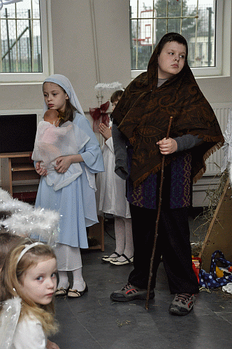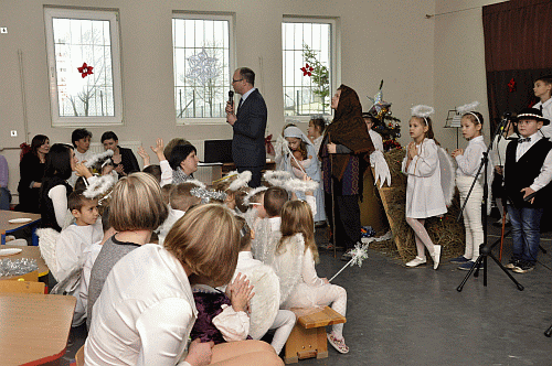 Dnia 17.12.2015 r. w naszej szkole zorganizowano Wigilię z Jasełkami. Organizacją wydarzenia zajęły się: p. Halina Bogóska, p. Marta Wiśniewska, p. Katarzyna Korbecka, p. Alicja Szmurło i p. Małgorzata Chojnicka. Do pomocy zaangażowani byli również pozostali nauczyciele i rodzice, którzy upiekli przepyszne ciasta i przygotowywali bożonarodzeniowe prace na kiermasz.