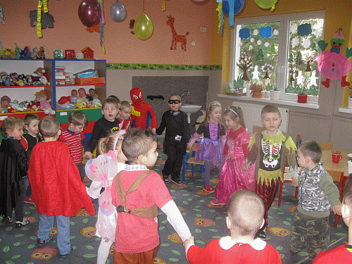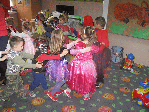 W Tłusty Czwartek 04.02.2016r. w naszym przedszkolu już od rana było bardzo gorąco, a wszystko to za sprawą atmosfery związanej z Balem Karnawałowym, na który wszyscy tak długo czekaliśmy! Przedszkole z minuty na minutę zapełniało się pięknymi księżniczkami, tajemniczymi wróżkami, odważnymi rycerzami i piratami. Zawitał też żołnierz oraz bohaterowie znanych i lubianych przez dzieci bajek jak Batman czy słynny Człowiek `“ Pająk. Trudno było wśród nich rozpoznać naszych przedszkolaków! Po prezentacji strojów rozpoczęły się rytmiczne tańce. Były one przeplatane zabawami i korowodami. Szaleństwom przy muzyce nie było końca, a w dodatku w salach czekały na dzieci poczęstunki. Do domów wszyscy wrócili zmęczeni, ale zadowoleni. Już teraz wymyślają pomysły na następne karnawałowe przebrania!