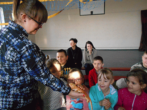 Dnia 05.02.2016 r. w Szkole Podstawowej w Zajeziorzu dzieci mogły skorzystać z ciekawych warsztatów prowadzonych przez pracownika ZOO w Płocku. W programie zajęć pojawiły się: pogadanka na temat funkcjonowania ogrodów zoologicznych, zagadki o zwierzętach, indywidualne zdjęcia z udziałem zwierzęcia `“ agamy o imieniu Florek. Ostatni etap warsztatów dawał uczniom wiele satysfakcji, dał możliwość osobliwego kontaktu z jaszczurką.