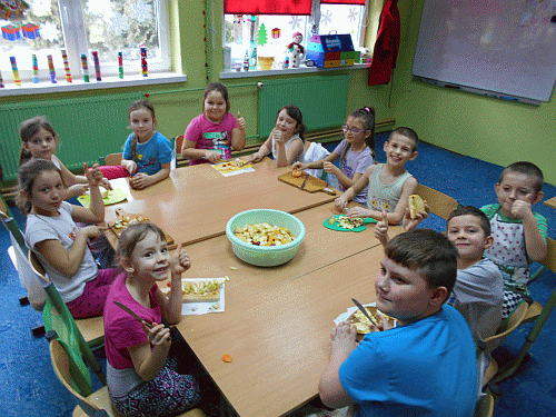 Dnia 16.02.2016 r. uczniowie z klasy drugiej pod opieką p. Marty Wiśniewskiej zrobiły przepyszną sałatkę owocową. Aromatyczny zapach roznosił się po całym korytarzu szkolnym. Dzieci były zaangażowane w pracy i chętnie smakowały swojej kulinarnej potrawy.