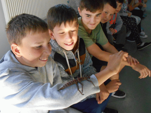 Dnia 21.09.2016 r. w Szkole Podstawowej w Zajeziorzu maluchy oraz uczniowie byli świadkami pokazu prawdziwych zwierząt egzotycznych. Niektórzy z nich odważyli się nawet dotknąć lub wziąć na rękę żywe okazy. Opiekun przywiezionych bezkręgowców i gadów opowiadał ciekawostki na ich temat. Pod koniec pokazu, chętne dzieci mogły zakupić patyczaka albo straszyka.