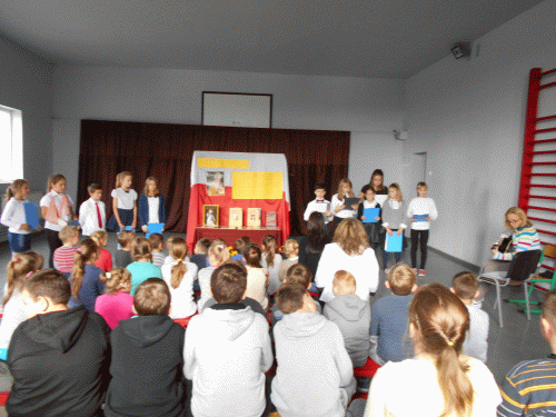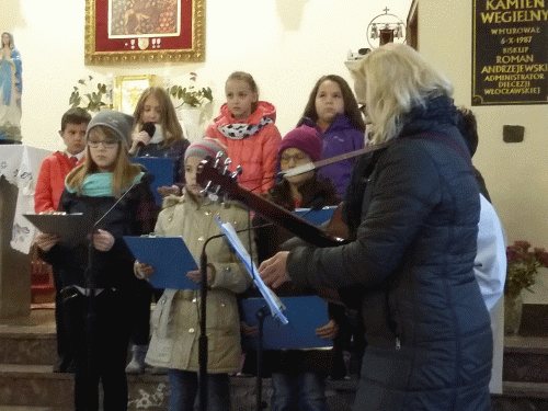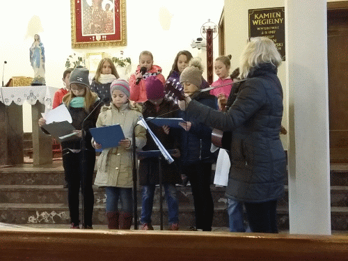 Dzieci ukazały fakty z życia Świętego Jana Pawła II od Wadowic po Łagiewniki. Nad przygotowaniem programu czuwała p. Halina Bogóska, katechetka z naszej szkoły. Nauczyciel muzyki, p. Katarzyna Rybczyńska zajęła się przepiękną stroną muzyczną wystąpienia. Uczniowie zostali wynagrodzeni gromkimi brawami. Ks. Proboszcz Sławomir Bącela serdecznie podziękował wszystkim zaangażowanym w występach.