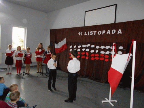 Po części artystycznej organizatorzy mieli dla wszystkich miłą niespodziankę `“ międzyklasowy konkurs sprawdzający wiedzę o Polsce. Uczniowie z klas 1 `“ 6 malowali z zamkniętymi oczami godło, rozpoznawali zabytki i składniki tradycyjnych potraw polskich, układali w kolejności rozsypane wycinanki z wersami "Roty". Zwyciężyła klas III, która w nagrodę otrzymała dyplom oraz darmowy bilet do kina ufundowany przez Stowarzyszenie na Rzecz Pełnego Rozwoju Dzieci i Młodzieży.