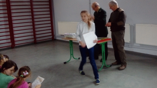 Dnia 20.12.2016 r. w naszej szkole gościliśmy myśliwych z koła łowieckiego "ŻBIK". Odbyło się rozstrzygnięcie konkursu na największą ilość zebranych kasztanów. Okazało się, że najbardziej aktywna w zbiórce była klasa czwarta. Klasy piąta i trzecia również zostały wyróżnione. Indywidualnie najwięcej kasztanów zebrała Wiktoria Przywitowska z klasy IV. Myśliwi wszystkim uczestnikom konkursu wręczyli upominki i podziękowali za zaangażowanie w pomoc dla zwierzyny leśnej. Organizatorką spotkania i konkursu była p. Małgorzata Chojnicka.