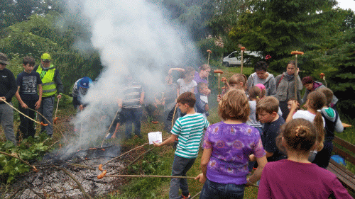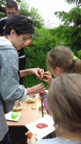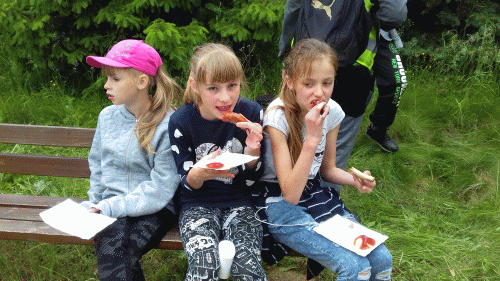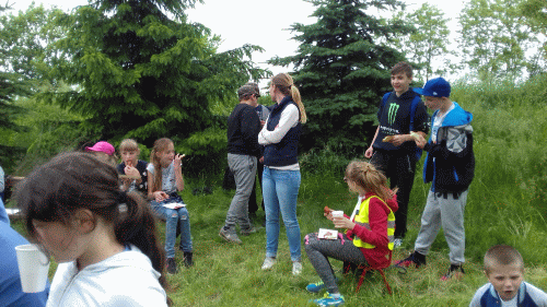Po dniu spędzonym w duchu sportowym na wszystkie dzieci czekała jeszcze biesiada przy ognisku z pieczonymi kiełbaskami, chlebem, napojami oraz lodami.