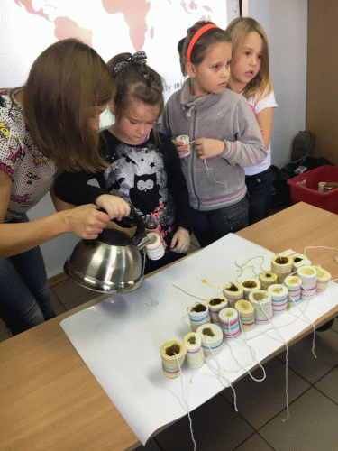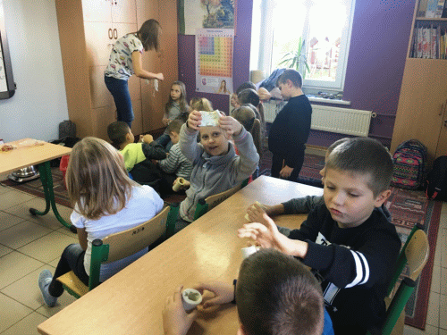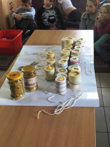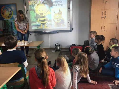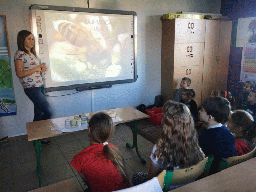 30 października uczniowie naszej szkoły uczestniczyli w warsztatach ekologicznych. Poświęcone były one życiu i znaczeniu pszczół. Najwięcej frajdy sprawiło im smakowanie pyłku i wykonywanie świec z wosku pszczelego.