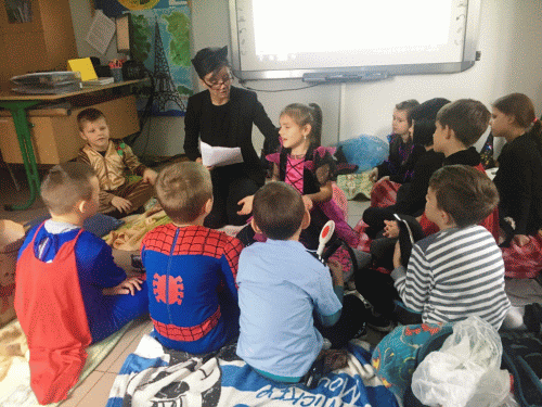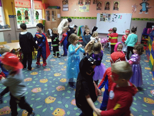 3 listopada obchodziliśmy w szkole Dzień Bajki. Przebrani za ulubione postaci z bajek oglądaliśmy bajki, odpowiadaliśmy na pytania konkursowe. Na koniec wspólnie bawiliśmy się na dyskotece. Miłym przerywnikiem były ciepłe rogaliki i mleko. Wszyscy wesoło spędziliśmy ten dzień.