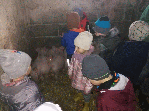 Dnia 11.10.2017 r. przedszkolaki odbyły wycieczkę do gospodarstwa rolnego Państwa Rolników z Liciszew. Celem wycieczki było poznanie życia na wsi, zwierząt hodowlanych w gospodarstwie oraz pracy rolnika. Dzieci z bliska mogły przyglądać się zwierzętom, pogłaskać i wysłuchać na czym polega ich hodowla. W oborze zobaczyły krowy, byki i cielaki. Tam dowiedziały się jak dojone są krowy, co jedzą i jak należy o nie dbać, by były zdrowe. Oprócz bydła u państwa Rolników hodowane są także świnie. Największą niespodzianką dla dzieci, którą gospodarze przygotowali było zobaczenie małych prosiąt. Przedszkolaki zobaczyły także kury, kaczki, króliki. Po zwiedzeniu gospodarze zaprosili wszystkie dzieci na przepyszne drożdżówki oraz ciepłe mleko lub herbatkę. Wróciliśmy do przedszkola w wyśmienitych humorach, bogatsi o nowe doświadczenia. Wycieczka była bardzo udana i z pewnością na długo zapadnie w pamięci dzieci. Serdecznie dziękujemy Państwu Rolnikom za miłe przyjęcie i poświęcony czas.
