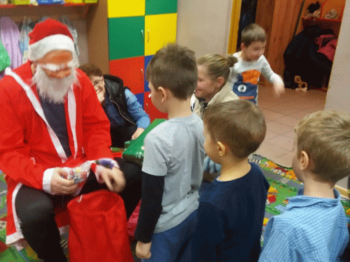 Już od samego rana przedszkolaki nasłuchiwały, czy nie słychać dźwięku dzwonka Św. Mikołaja. Pomimo braku białego puchu, jak co roku przybył do Przedszkola Św. Mikołaj. Na jego wizytę dzieci cierpliwie czekały . Wcześniej nauczyły się wielu piosenek i wierszy, które specjalnie dla Niego przygotowały. Spotkanie z Mikołajem minęło w bardzo miłej atmosferze. Dzieci powitały gościa piosenką . Nawiązała się wymiana zdań . Przedszkolaki obiecały Mikołajowi, że się poprawią. Na koniec po zapewnieniach, że będą się starały zachowywać grzecznie w domu i w przedszkolu, Mikołaj obdarował je oczywiście prezentami.
