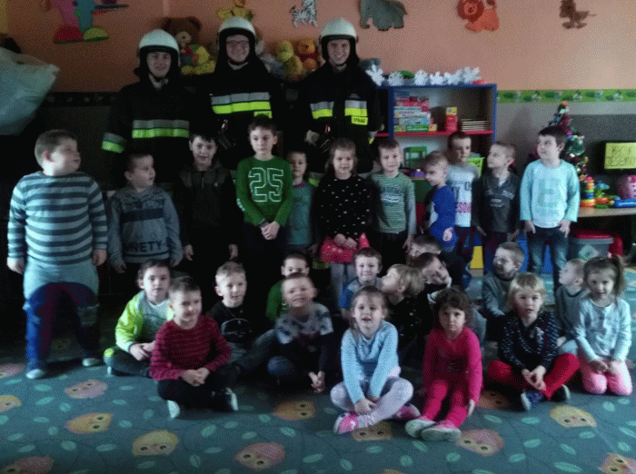 Dnia 05.01.2018 r. dzieci z oddziału przedszkolnego odwiedzili panowie strażacy z Kikoła. Podczas tego spotkania strażacy przybliżyli obecnym zasady postępowania w przypadku pożaru, sposoby alarmowania służb ratowniczych. W czasie spotkania z przedszkolakami strażacy przypomnieli dzieciom podstawowe zasady zachowania bezpieczeństwa podczas zabaw na śniegu. Zwrócili szczególną uwagę i zakazali dzieciom zbliżać się do jeziora i stawów, ponieważ te miejsca zimą są szczególnie niebezpieczne. Przestrzegli uczniów przed kontaktami z osobami nieznajomymi. Dzieci aktywnie uczestniczyły w spotkaniu. Uważnie słuchały rad strażaków. Na zakończenie panowie życzyli dzieciom przyjemnego i bezpiecznego wypoczynku.