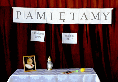 Dnia 5 kwietnia bieżącego roku Uczniowie SP w Zajeziorzu przygotowali uroczysty apel upamiętniający 13 rocznicę śmierci Papieża Jana Pawła II. Uroczystość ta pod hasłem "PAMIETAMY" była zarówno hołdem oddanym przez uczniów naszej szkoły największemu Polakowi wszechczasów `“ Świętemu Janowi Pawłowi II, jak też podziękowaniem za jego pontyfikat, będący niepowtarzalnym darem dla każdego z nas.