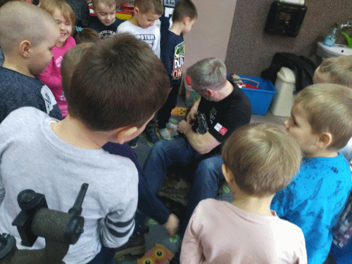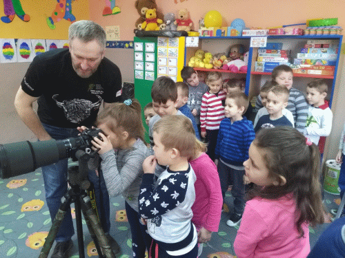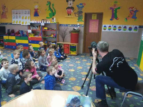 Dnia 26.03.2018 roku gościliśmy w naszym przedszkolu prawdziwego fotografa `“ p. Pawła Rzeszota, który opowiedział nam o swojej pracy. Podczas spotkania dzieci miały również okazję obejrzeć profesjonalny sprzęt, jakiego w swojej pracy on używa. Ponadto każdy z przedszkolaków mógł obejrzeć ``małą kolekcję` fotografii, które nasz gość przyniósł specjalnie na spotkanie z przedszkolakami. Podczas pogadanki dzieci dowiedziały się, że podstawą pracy fotografa jest nie tylko talent, ale także ciężka praca, doświadczenie i ciągłe szkolenie oraz wyrabianie tak zwanego ``fotograficznego oka`.