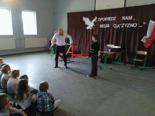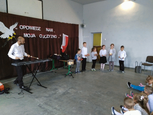 W tym samym dniu odbył się w naszej szkole występ muzyka z filharmonii. Przybliżył on nam różne instrumenty. Niektórzy mogli spróbować swoich sił w grze na instrumentach.