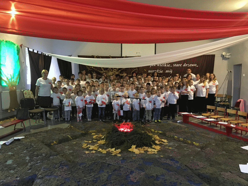 9 listopada 2018 r. o godzinie 11.11 w związku z obchodami 100 rocznicy odzyskania Niepodległości przez Polskę, uczniowie, nauczyciele i pracownicy śpiewali Hymn Państwowy "Mazurek Dąbrowskiego".