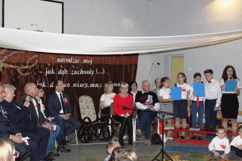 Dnia 09.11.2018 roku o 1630 spotkaliśmy się na wieczornicy z okazji 100-tnej rocznicy Odzyskania przez Polskę Niepodległości. W uroczystości uczestniczyli zaproszeni goście: Wójt gminy Kikół pan Józef Predenkiewicz, proboszcz parafii Ciepień ks. Sławomir Bącela, przewodniczący Rady Gminy p. Jacek Sadowski , dyrektor Ośrodka Kultury Gminy p. Kikół Krzysztof Kończalski, Rada Rodziców, opiekunowie drużyn harcerskich: p. Marek Baranowski i p. Anna Burak, prezes stowarzyszenia p. Ewa Żuchowska, radny Gminy Kikół p. Paweł Żuchowski, harcerze z Kikoła i Czernikowa, zaprzyjaźnione dzieci z Wielgiego oraz rodzice i uczniowie. W przygotowanym pod kierunkiem p. Małgorzaty Borkowskiej, p. Magdaleny Majewskiej, p. Michaliny Sobocińskiej programie młodzież szkolna przypomniała historię walk o niepodległość. Program pięknymi pieśniami uświetnił zespół ``Dobro`, składający się z uczniów i absolwentów naszej szkoły. Następnie postać Józefa Piłsudskiego przybliżyła nam p. Małgorzata Jarocińska. Po jej wystąpieniu zgromadzeni na uroczystości wspólnie śpiewali pieśni patriotyczne. Na gitarze grał p. Bogusław Bortowski. Po zakończonej uroczystości wszyscy udali się na słodki poczęstunek.