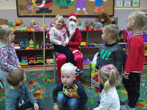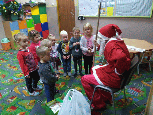 Święty Mikołaj odwiedza dzieci na całym świecie. 6 grudnia z workiem pełnym prezentów odwiedził naszych przedszkolaków.. Dzień ten był niezwykle radosny i pełen wrażeń dla wszystkich milusińskich. Oprócz pełnego prezentów worka św. Mikołaj przywiózł ze sobą dużo uśmiechu. Rozmawiał z dziećmi, zachęcał ich, aby były grzeczne, słuchały rodziców i pań w przedszkolu. Na zakończenie Jego wizyty wszyscy otrzymali prezenty. Za prezenty dzieciaki odwdzięczyły pięknymi piosenkami i własnoręcznie przygotowanymi pracami przedstawiającymi Mikołaja. Oczekiwane cały rok Mikołajki minęły w bardzo miłej atmosferze i przyniosły naszym przedszkolakom wiele radości. Dzień ten na długo pozostanie w pamięci wszystkich przedszkolaków, a niektórzy z nich już od jutra nie będą mogli doczekać się kolejnej wizyty Świętego Mikołaja.