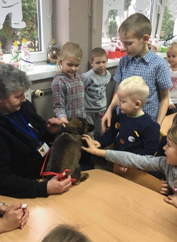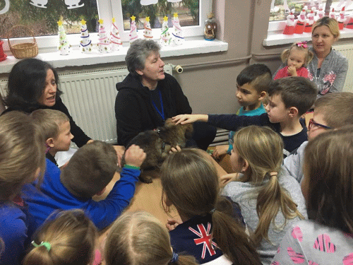 7 grudnia 2018 roku gościliśmy szkole pracownice Fundacji Mondo Cane z Włocławka wraz z jednym z podopiecznych. Panie przedstawiły nam specyfikę swojej pracy oraz prezentację dotyczącą interwencji przeprowadzonych przez pracowników schroniska. Uczniowie naszej szkoły podarowali karmę dla podopiecznych schroniska. Otrzymaliśmy również zaproszenie do odwiedzenia tego miejsca.