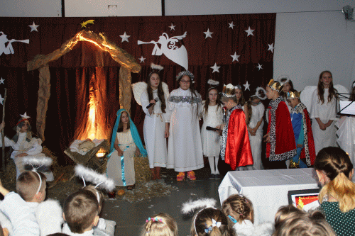 18 grudnia obchodziliśmy wigilię szkolną, w której oprócz społeczności szkolnej, udział wzięli rodzice i zaproszeni goście. Uczniowie przypomnieli nam historię narodzenia Pana Jezusa. Nie zabrakło również wspólnego śpiewania kolęd, dzielenia się opłatkiem oraz składania życzeń.