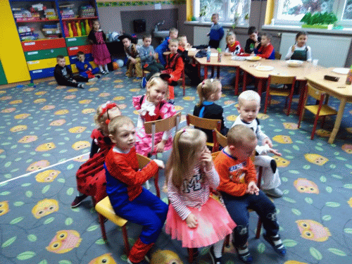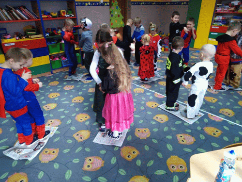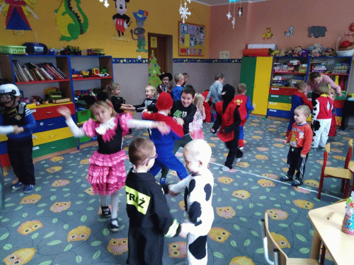 Jak co roku w karnawale w naszym przedszkolu odbył się oczekiwany przez dzieci ``Bal Przebierańców`. W tym dniu przenieśliśmy się do WIELKIEJ KRAINY BAJEK. Po wielkiej prezentacji strojów rozpoczęły się tańce `“ przy rytmach wesołej muzyki, były one przeplatane zabawami i korowodami. Niespodzianką był taniec z balonami oraz taniec na gazecie. Oczywiście znalazło się również coś dla spragnionych i zmęczonych, chwila relaksu przy wspólnym poczęstunku i pamiątkowe zdjęcie. Do domu dzieci wracały we wspaniałych humorach, dzieląc się z rodzicami swoimi przeżyciami.
