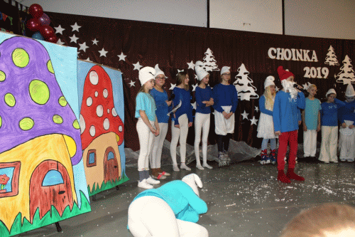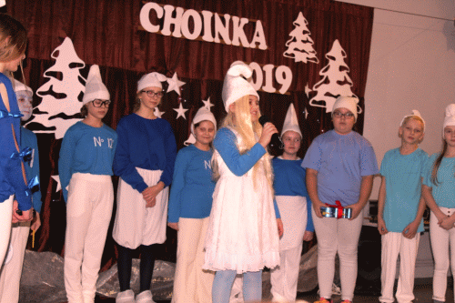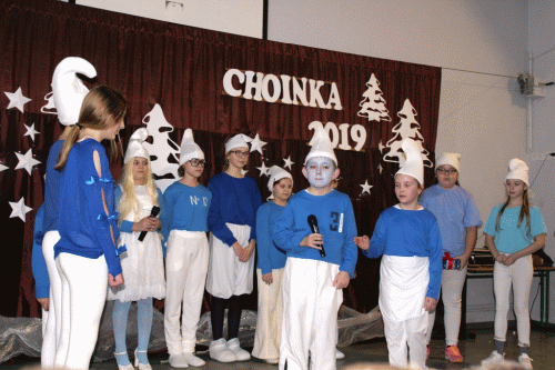 2 lutego w naszej szkole odbyła się choinka. Rozpoczął ją występ iluzjonisty p. Mariusza Czajki. Następnie uczniowie przenieśli nas do krainy Smerfów, które bardzo chciały mieć śnieżną zimę. Kolejnym punktem programu stanowił występ rodziców. Wzbudził on wśród publiczności ogromny aplauz. Po przestawieniu nastąpiła zabawa, którą prowadziła Grupa T. Uczestników choinki odwiedził św. Mikołaj, który obdarował uczestników prezentami. Po jego wizycie trwała dalsza zabawa.