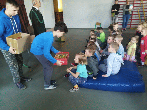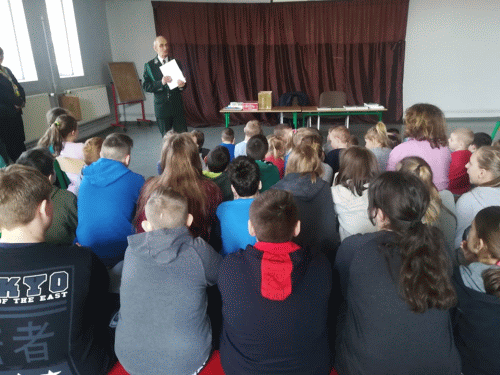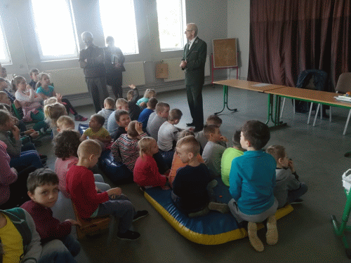 4 kwietnia 2019 r. szkołę odwiedzili myśliwi. Podziękowali dzieciom za zbiórkę kasztanów i żołędzi, które użyto do dokarmiania zwierząt. Dzieci, które zebrały najwięcej, otrzymały nagrody. Wszyscy natomiast- słodki poczęstunek i owoce.