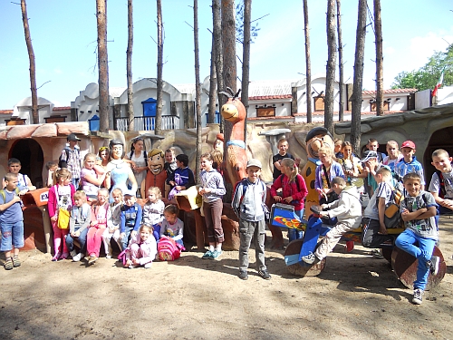 Dnia 27.05.2013 r. uczniowie Szkoły Podstawowej w Zajeziorzu wyjechali do Miasteczka Westernowego `“ Mega Parku w Grudziądzu. Kierownikiem wycieczki była p. Iwona Kaczorowska a opiekunami: p. Halina Bogóska, p. Monika Bonowicz i p. Marta Stempska. Kiedy wszyscy dojechali do celu przebierańcy `“ więźniowie zabrali dzieciom plecaki, ale dzielny kowboj ich uratował. Następnie udali się do miasteczka i zwiedzili zoo, Safari, Mega Owady, Park Jurajski, Krainę Baśni, Bajek i Legend. Kolejną atrakcją były przejażdżki pojazdem Flinstonów i kolejką Kansas City. Podczas przejażdżki kolejką pasażerowie przeżyli napad złodzieja `“ przebierańca. Dzieci mogły strzelać na strzelnicy i w strumieniu przy kopalni poszukiwać samorodków złota. Wszyscy jechali bryczką, a później doili krowy. Pracownicy Mega Parku zorganizowali przedstawienie z udziałem Lucky Lucka i braci Daltonów. Uczniowie szukali szczątków dinozaurów i zjedli obiad. W wolnym czasie można było kupić pamiątki i skorzystać z dodatkowych atrakcji.