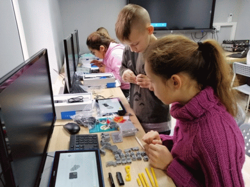 W dniu 28.01.2020 r. uczniowie S.P. w Zajeziorzu brali udział w ``Laboratorium robotyki` zorganizowanym w ich szkole. W zajęciach prowadzonych przez p. Romana Szymańskiego wzięło udział 15 uczniów w wieku od 7 do 12 lat. Szkoła Podstawowa w Zajeziorzu od niedawna posiada własne laboratorium robotyki, na które składa się 14 robotów Jimu firmy UBITECH. Uczniowie z dużym zapałem budowali proste roboty, wchodzące w skład zestawu Jimu Box. Wszystkim uczestnikom warsztatów udało się ``stworzyć` pierwszego, własnego robota. Wielką frajdę oprócz samego budowania, sprawiło uczniom także programowanie robotów. Młodzi konstruktorzy musieli mocno wytężać szare komórki, aby zbudowane przez nich roboty wykonywały pożądane działania. Trwające 3 godziny warsztaty minęły w oka mgnieniu. Uczniowie prawie natychmiast chcieli przystąpić do budowy bardziej skomplikowanych robotów, które także w swoim laboratorium posiada ich szkoła.