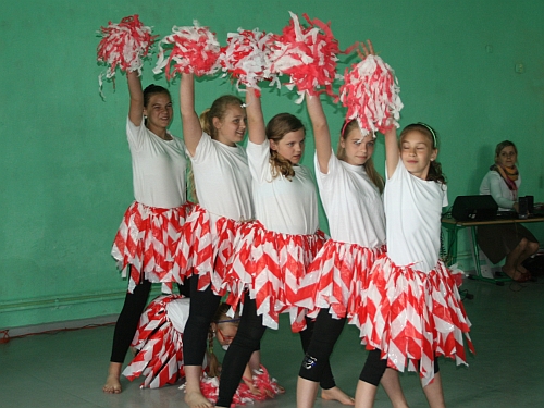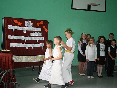 Następnie głos zabrali uczniowie, którzy zapalając znicz olimpijski przenieśli nas do Starożytnej Grecji. W trakcie przedstawienia swoje umiejętności przedstawiali chłopcy, grając w piłkę nożną i koszykówkę. Natomiast dziewczęta doskonale zaprezentowały się w specjalnie przygotowanym na tę okazję układzie choreograficznym. Przedstawienie zorganizowała polonistka, p. Małgorzata Sztuczka.
