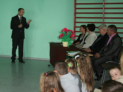 Na początku każdy z przybyłych gości został poproszony o wygłoszenie krótkiego przemówienia. Po tej części uroczystości dyrektor, p. Zbigniew Bogóski wręczył specjalnie przygotowane podziękowanie wszystkim osobom, które pomogły w inwestycji.