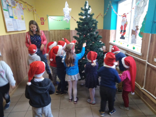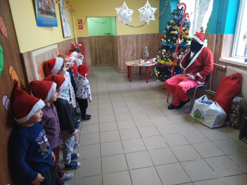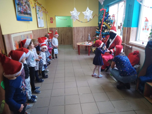 Jak co roku z niecierpliwością przedszkolaki czekały na przyjście Świętego Mikołaja. W tym roku również postanowił odwiedzić nasze przedszkole. 8 grudnia 2020 roku w oddziałach przedszkolnych odbyło się spotkanie Mikołajkowe. Dopóki Święty Mikołaj nie dotarł do Przedszkola, dzieci wysłuchały opowieści o tradycji Mikołajek jak i o samym Mikołaju. W tym dniu dzieci wraz ze swoimi paniami przystroiły choinkę, udekorowały korytarz oraz wesoło bawiły się przy świątecznych piosenkach. Po wyczerpującej zabawie wreszcie zjawił się długo oczekiwany gość `“ Święty Mikołaj.