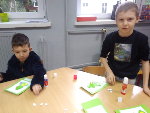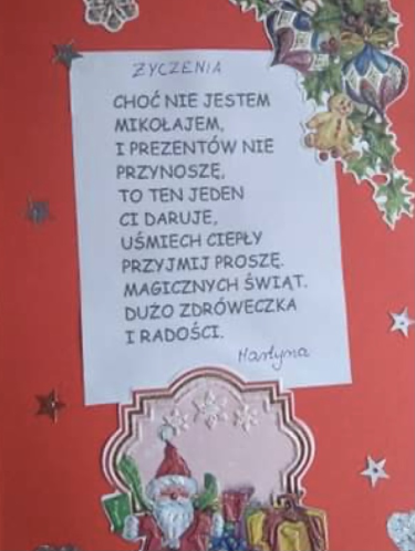 Do akcji "Wylosuj Anioła` przyłączyli się również uczniowie z klasy drugiej. Z wielkim zaangażowaniem przygotowali świąteczne kartki dla dzieci przebywających w szpitalu. Mają ogromną nadzieję, że te kartki wywołają radość i uśmiech na twarzy chorych dzieci. Uczniom klasy drugiej towarzyszy motto: "Każdy bezinteresowny uczynek wywołuje kolejne`¦`