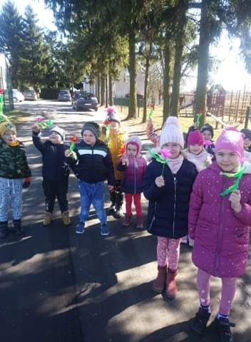 22 marca świętowaliśmy w przedszkolu ``Pierwszy Dzień Wiosny`. Przedszkolaki przygotowały wiosenne kwiatki, z którymi udały się na długi, wiosenny spacer. W trakcie spaceru trwały poszukiwania pierwszych oznak wiosny.