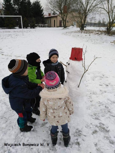 W konkursie fotograficznym pn. ``Zima w obiektywie` brało udział 14 uczniów: Ines Kęprowska i Luiza Sadowska z klasy I, Mateusz Boniecki z klasy II, Bartosz Sadowski z klasy IV, Wojciech Bonowicz, Nikola Grabowska i Helena Sobolewska z klasy V, Bartosz Grabowski, Izabela Kawczyńska i Oliwier Wenderlich z klasy VI, Agata Maćkiewicz z klasy VII, Dawid Grabowski, Karina Kęprowska i Julia Sadowska z klasy VIII.