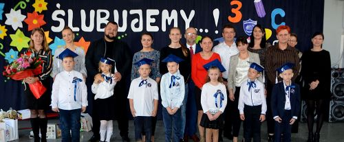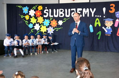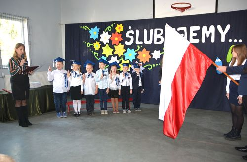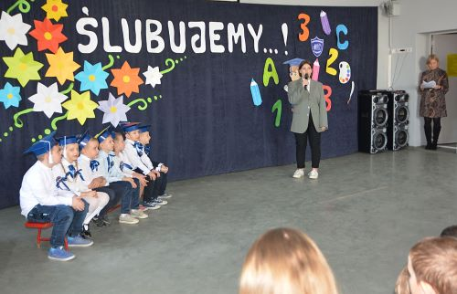 W niezwykle podniosłej atmosferze, przed pocztem sztandarowym uczniowie klas pierwszych ślubowali być dobrymi Polakami, godnie reprezentować swoją szkołę, swym zachowaniem i nauką sprawiać radość rodzicom i nauczycielom. Po złożeniu ślubowania Dyrektor szkoły dokonał symbolicznego pasowania na ucznia, dotykając ołówkiem, jak czarodziejską różdżką, ramion dzieci. Od tej chwili stali się oni nowymi członkami naszej wielkiej szkolnej rodziny!